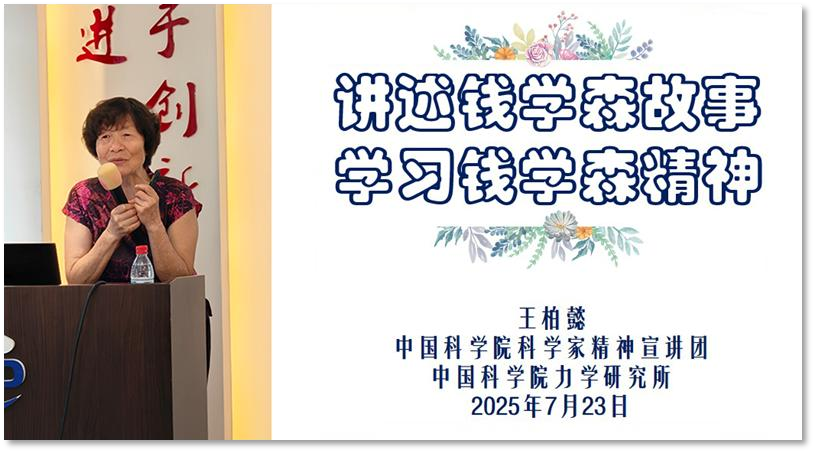 王柏懿以《讲述钱学森故事,学习钱学森精神》为题,生动再现了钱学森先生为我国航天事业和力学研究事业奠基立业的壮阔历程。王柏懿以六个故事为主线,重点讲述了力学所在早期参与“两弹一星”工程的辉煌历程,涵盖从推动液体火箭发动机研制,到开展再入飞行器热防护以及导弹气动力学研究,再到保障我国首颗人造卫星自主研制等一系列任务,全面呈现了以钱学森为代表的老一辈科研工作者为国家国防安全与科技自立自强奋力攻坚的精神。