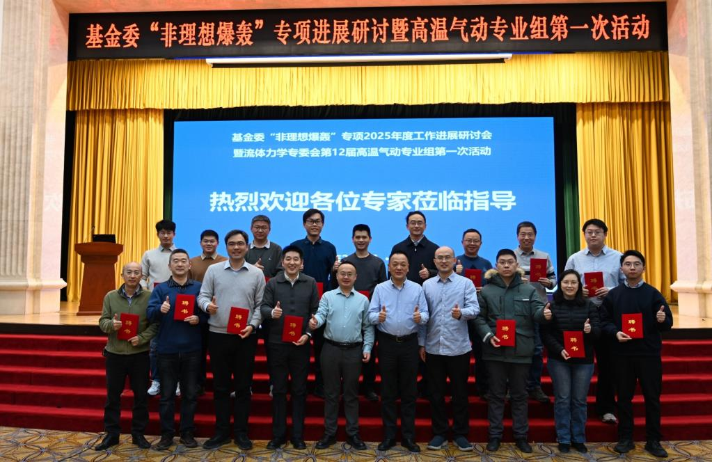 近日,国家自然科学基金专项项目“非理想爆轰推进高超流动机理及调控”2025 年度工作进展研讨会暨流体力学专委会第 12届高温气动专业组第一次活动在北京顺利举行。专项项目责任专家唐志共院士和富庆飞教授,航天单位推进领域特邀专家,力学学会副秘书长滕宏辉教授和张自兵主任,专项项目负责人,专业组成员以及来自相关高校、科研院所的专家学者共计 60 余人出席了本次会议。