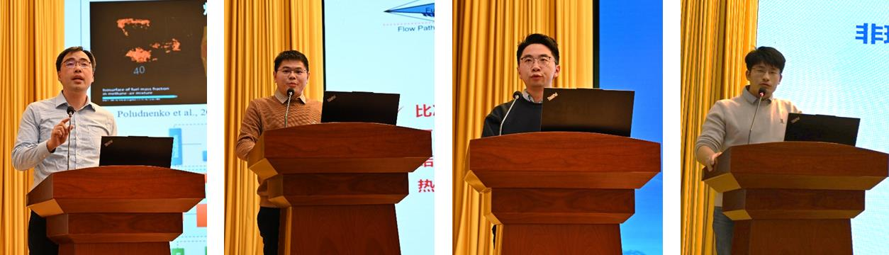 会议第二阶段依托高温气动专业组展开。专业组包含高等院校成员 9 人、科研院所成员 9 人,体现了基础、应用基础和应用研究等方面的结合,力学所韩桂来研究员担任组长,北京航空航天大学张俊教授、上海交通大学张博教授分别担任副组长。韩桂来介绍专业组管理细则,提出了初步工作计划供大家讨论,并认为“专业组成员的身份既是学界和领域的肯定认可,更是责任与担当”,号召大家积极工作、无私奉献。上海交大张博教授、北京理工大学张子健教授、厦门大学彭瀚助理教授、力学所姚克鹏助理研究员分别针对爆轰点火机理、边界层影响、煤油/空气旋转爆轰、非理想混合斜爆轰等作学术专题报告,与会专家围绕报告内容、协同攻关机制以及未来重点发展方向进行了深入讨论。邀请报告环节分别由王兵教授、刘世杰研究员主持。